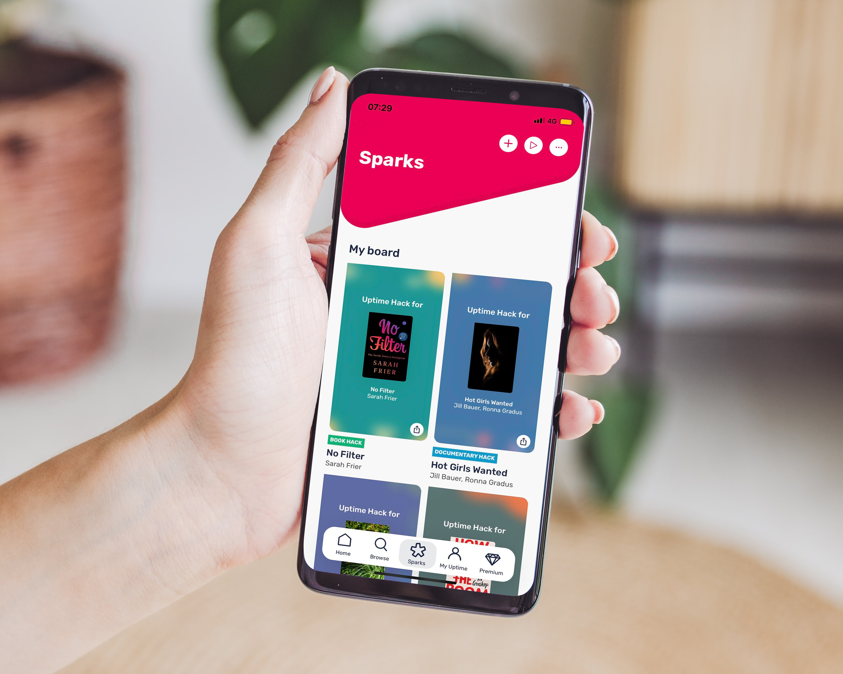 The Uptime team carefully curate every book, course, or documentary that finds its way onto the app, so that each session you spend in-app is full of those little lightbulb moments; now, the new Sparks feature is your way of collecting them.