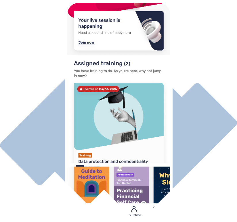 From onboarding and compliance, to wellbeing and continuous development, Uptime automates complex workflows, saving hours for HR and L&D teams whilst keeping learners effortlessly on track.